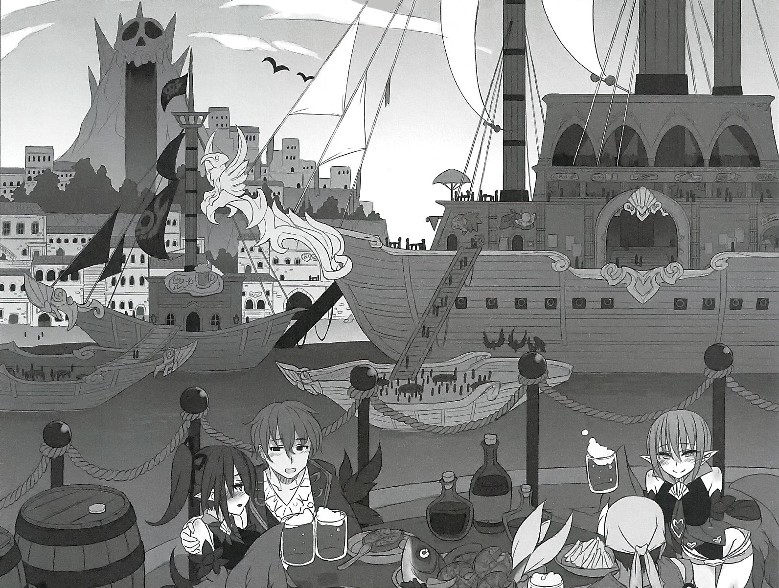 Eh? Are you squeezing closer and closer? That's right♪ After all, for each of them you are the goal! Both groups want to take you aboard their ship and have a "feast of joy". But still, I can explain everything, so don't grab me so hard♪